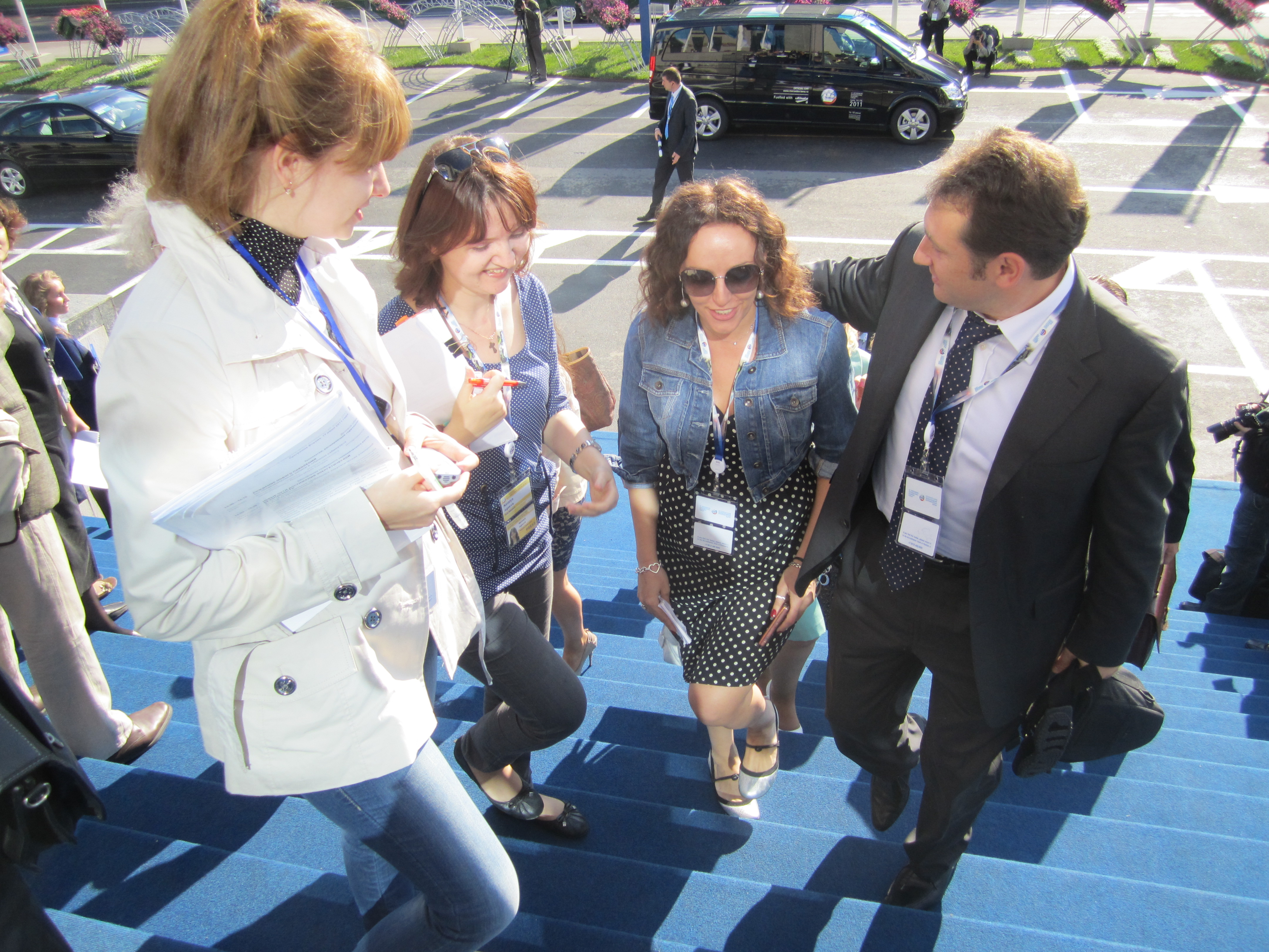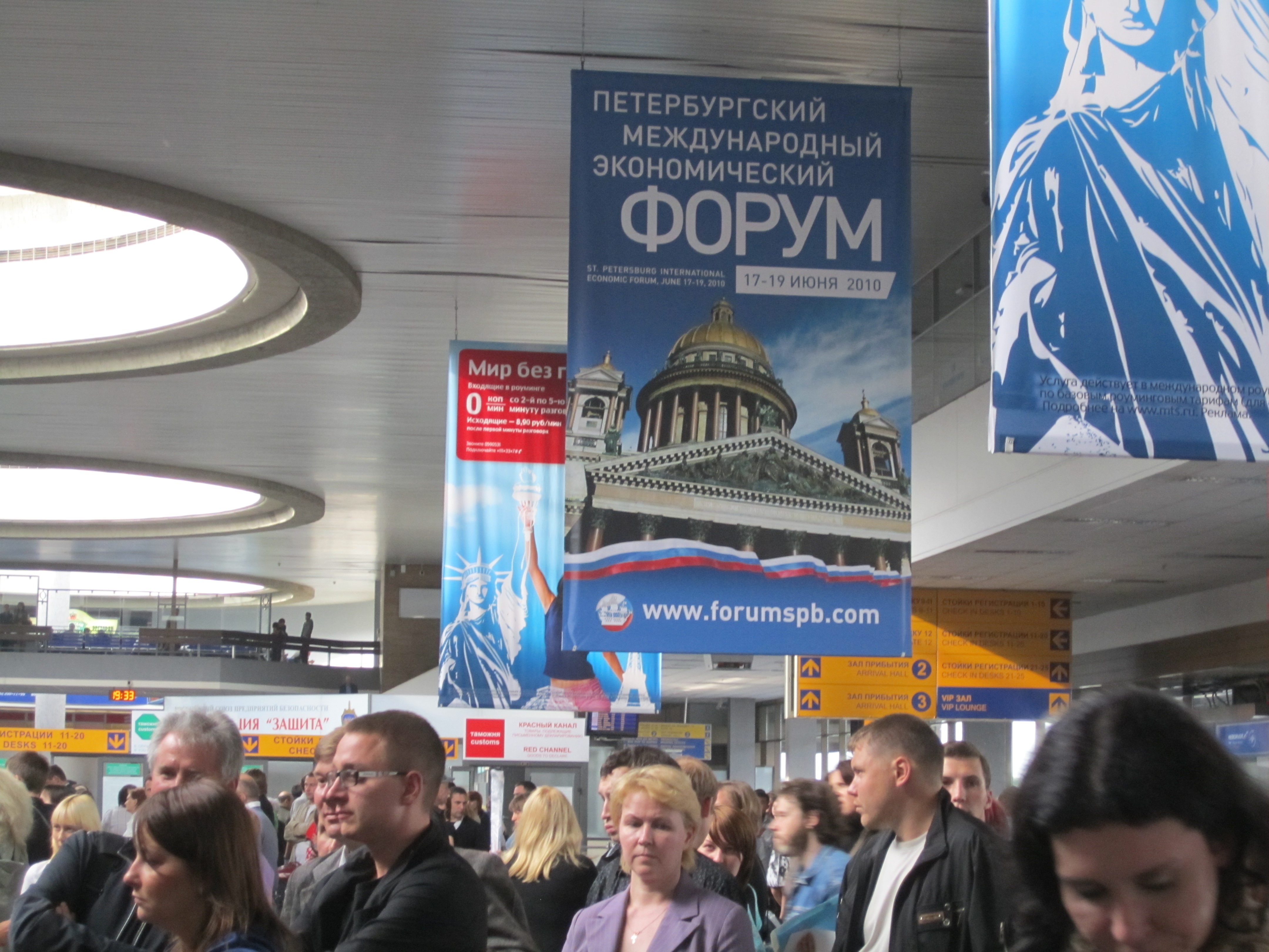 Last year, Alexandra Karamanova and I blew into St. Petersburg’s Pulkovo airport and were accredited right there at the terminal. It was superb. Directly out of customs, we noticed a young woman dressed in white and blue with a red scarf (colors of the Russian flag) waving to us, recognizing we were Americans, and asking us if we were heading to the Forum. At the time, I was oblivious to the attention that was unfolding directly in front of me as I hauled off the jet plane.