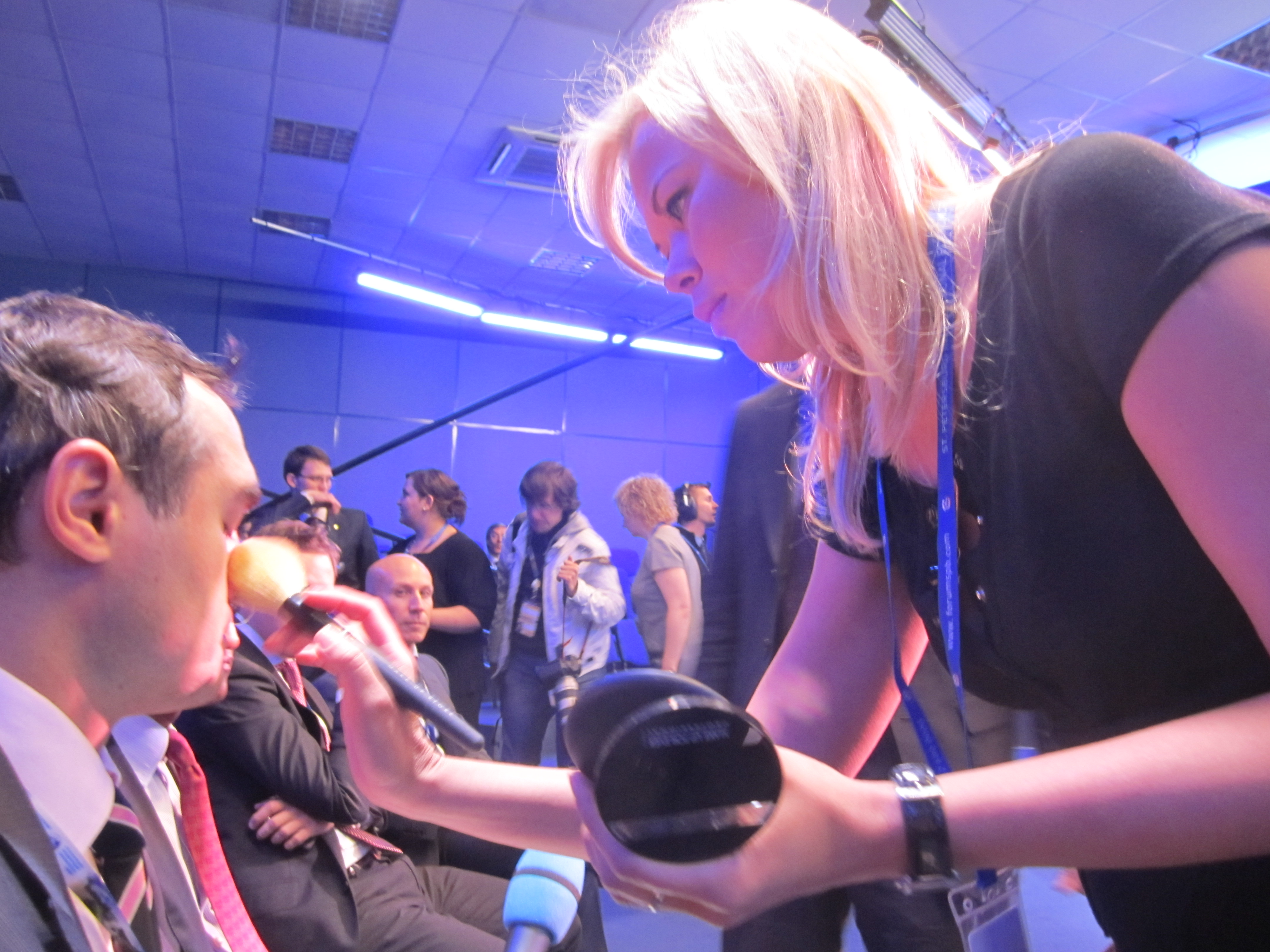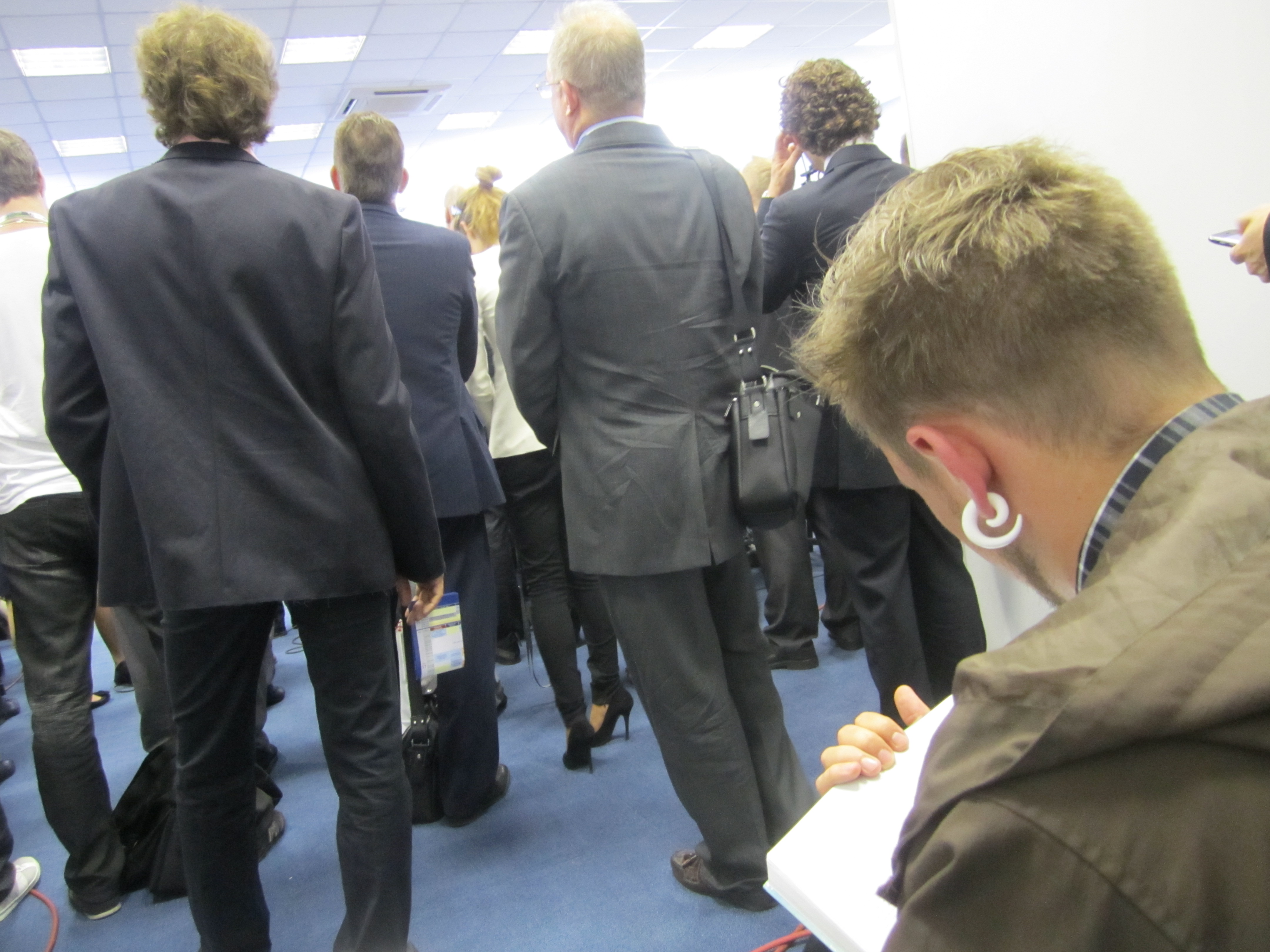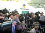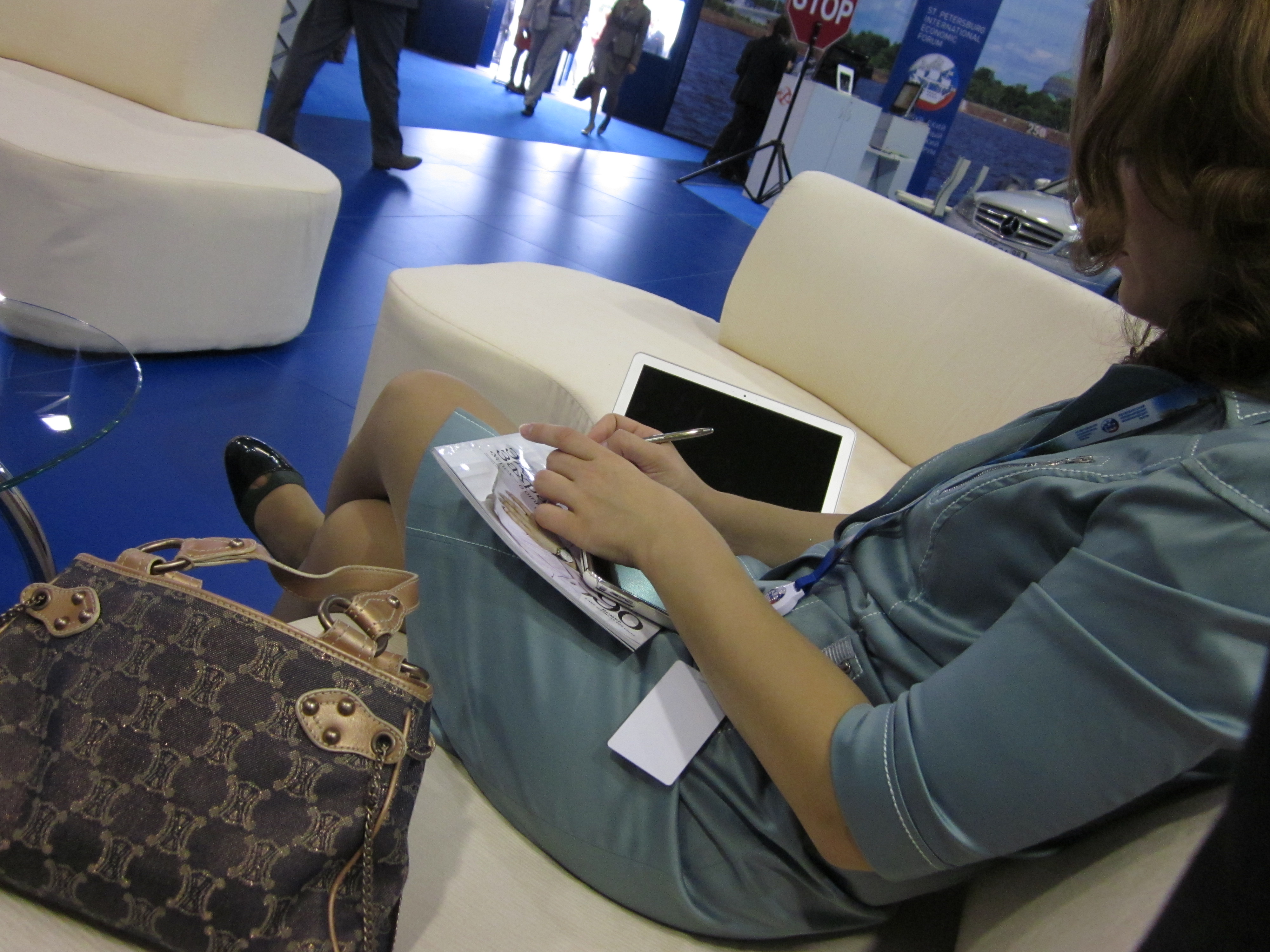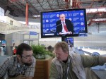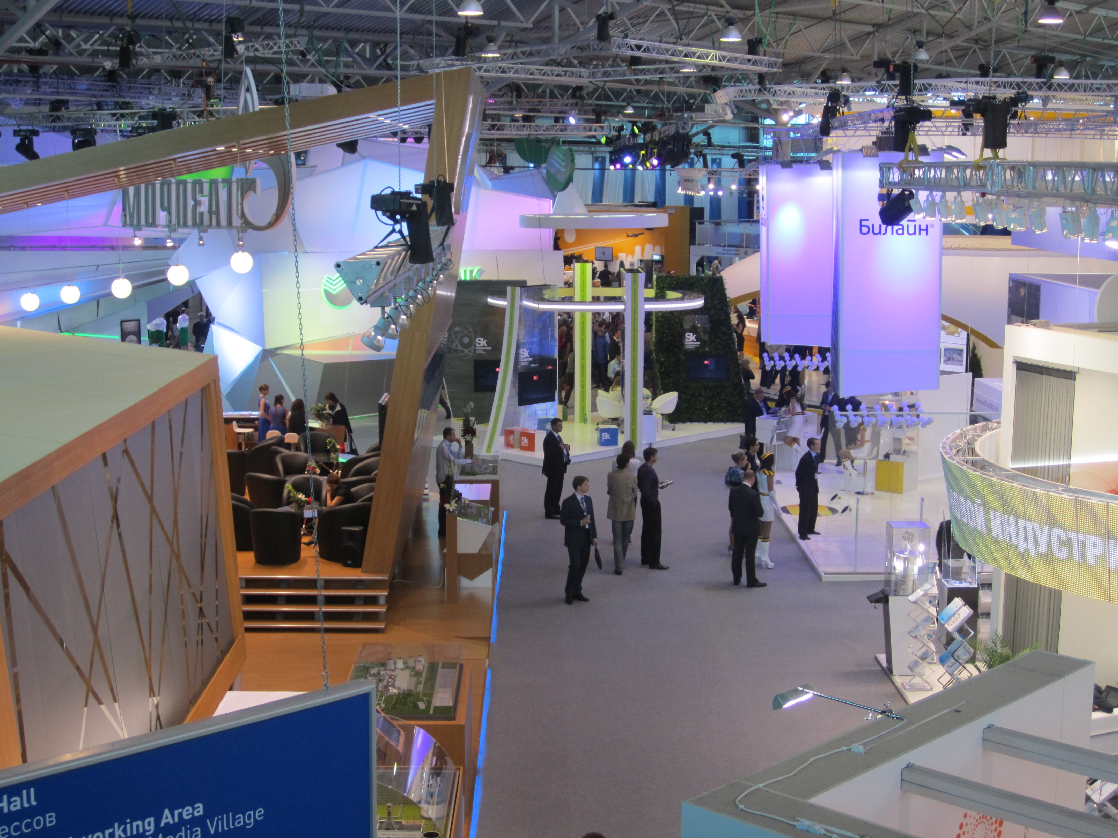 Well, I’m stumbling across Pavilion 7, and there really is some kind of brouhaha going on, with a bunch of journalists crammed into one corner, near the Sberbank exhibit.
