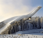 Oslo Energy Forum at Holmenkollen Hotel — an image of the new state-of-the-art ski jump serving as a seriously brooding back drop at dinner speeches