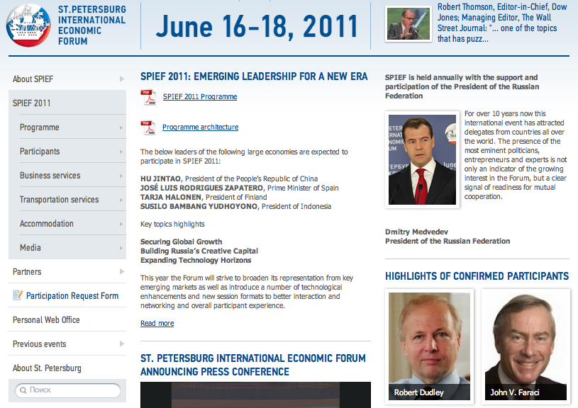 I have got to send an email to Robert Dudley, current head of British Petroleum. As I mentioned, last year at this time, I was supposed to see him in London. Before I arrived, there was the terrible oil spill in the Gulf of Mexico, and Robert was called away to handle the disaster. Robert will be giving a key-note at the St. Petersburg Forum, and the organizers have splashed his photo on the website.