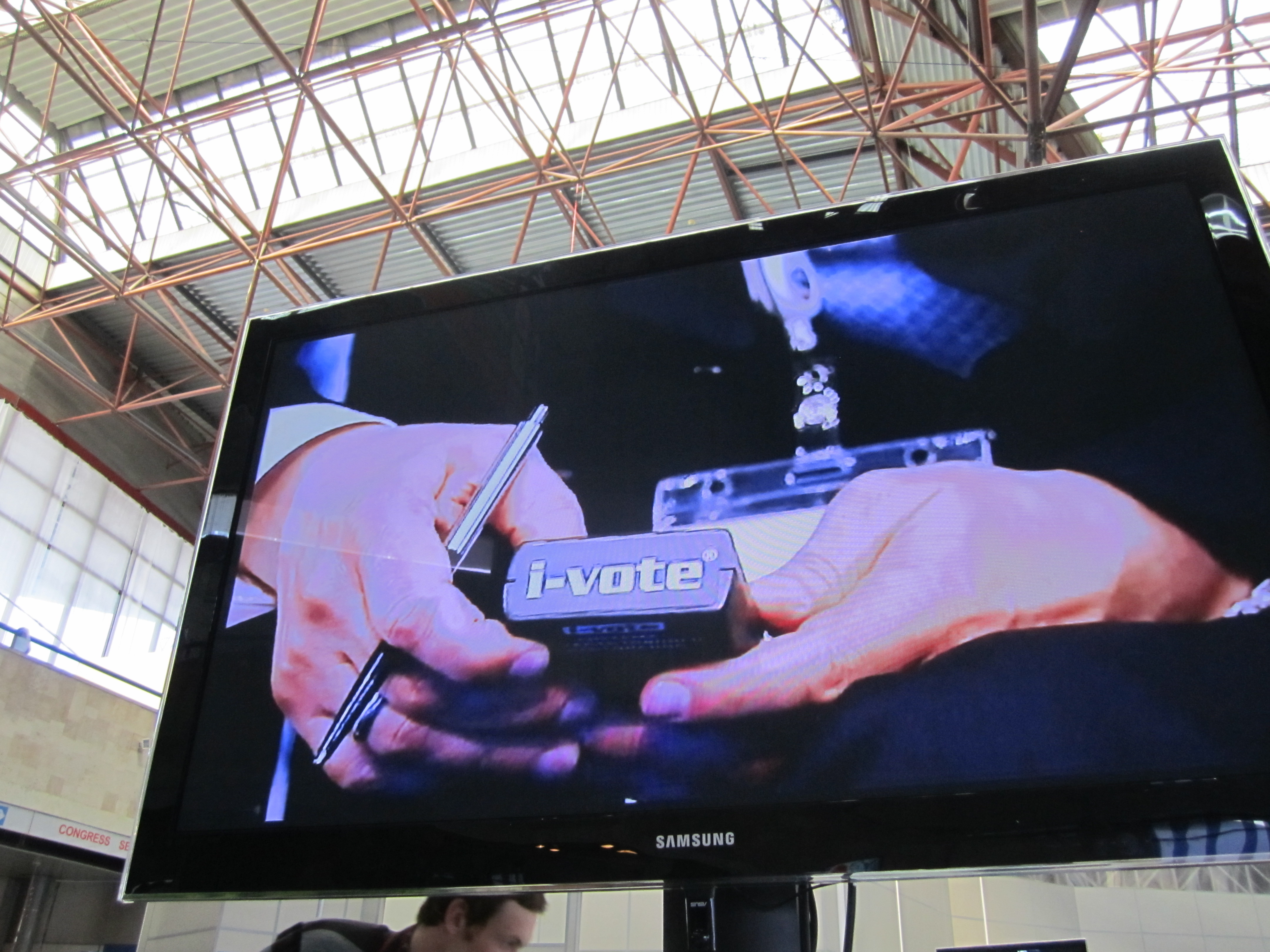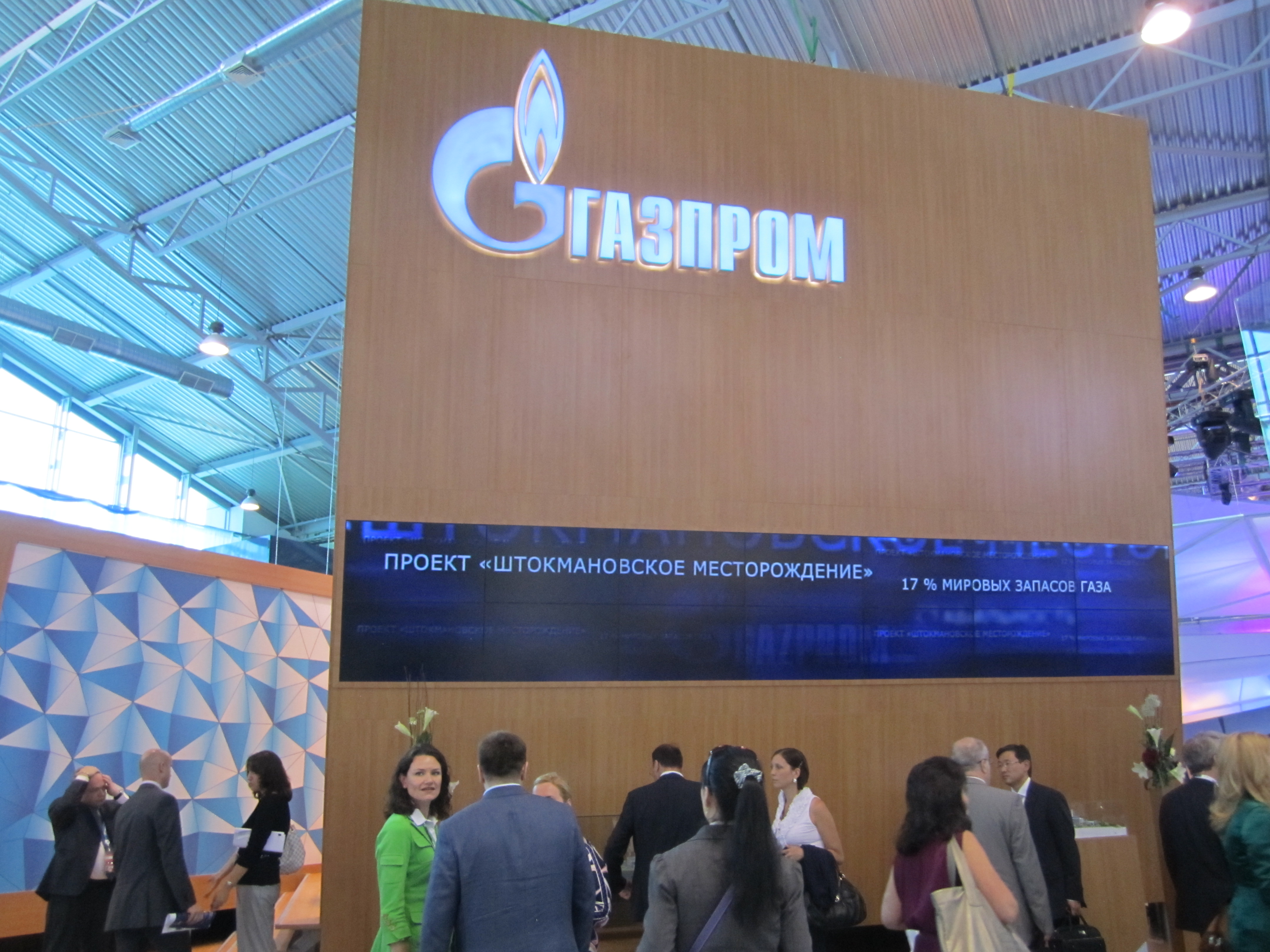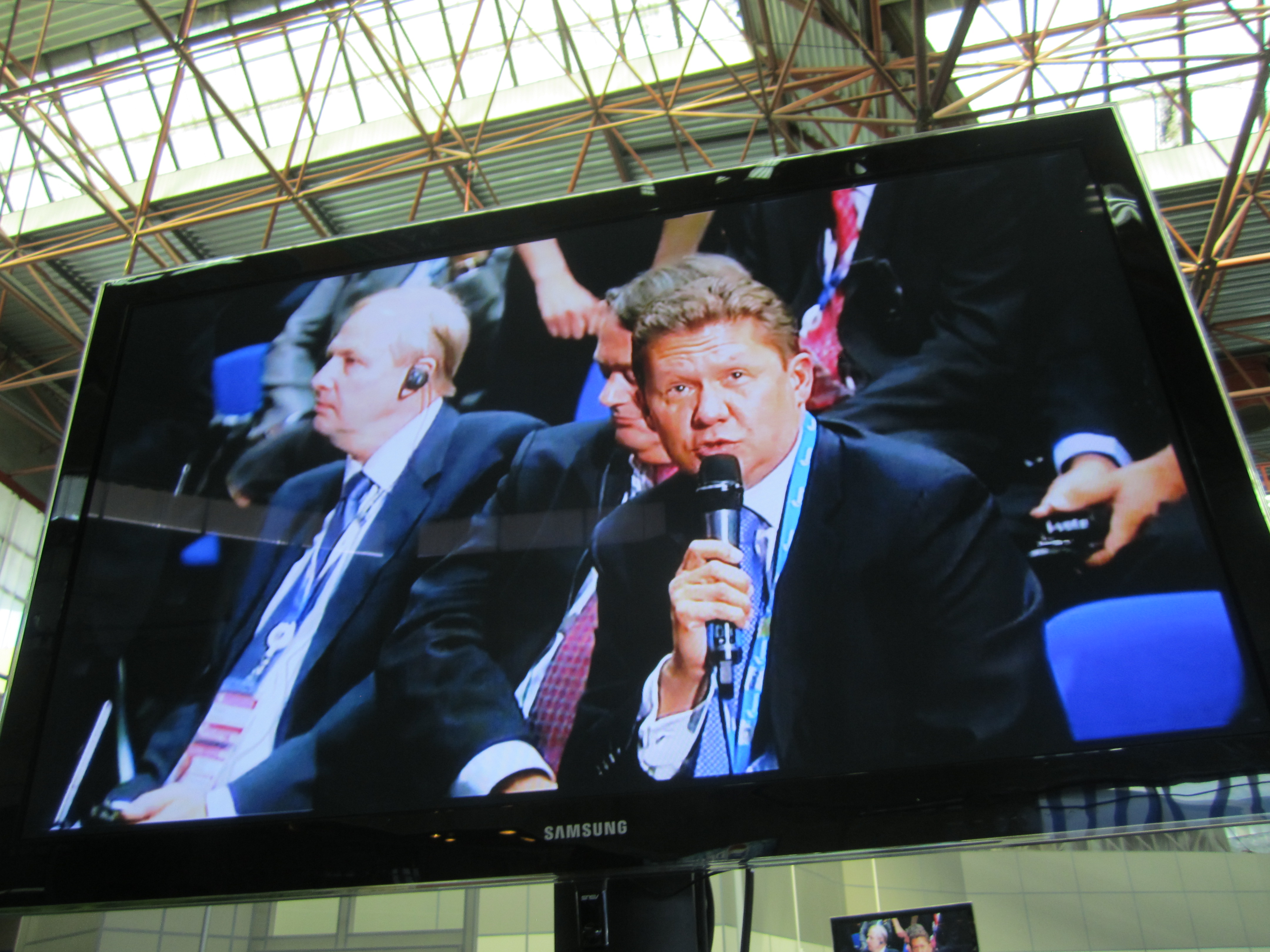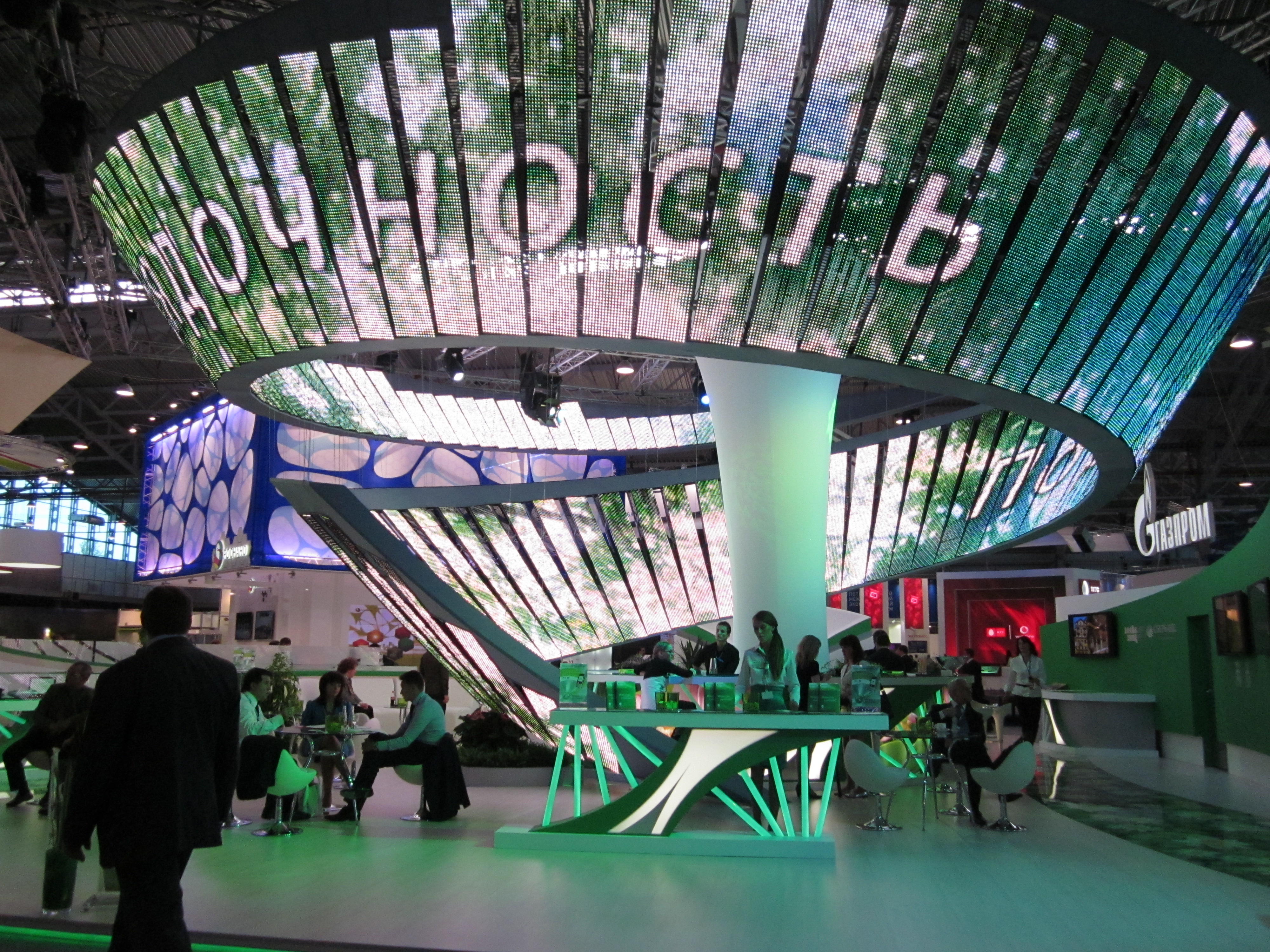 I headed back into Pavilion 7 and caught a few shots of the Gazprom exhibit, with the words Shtokman in English and Russian scrolling across the scene.
