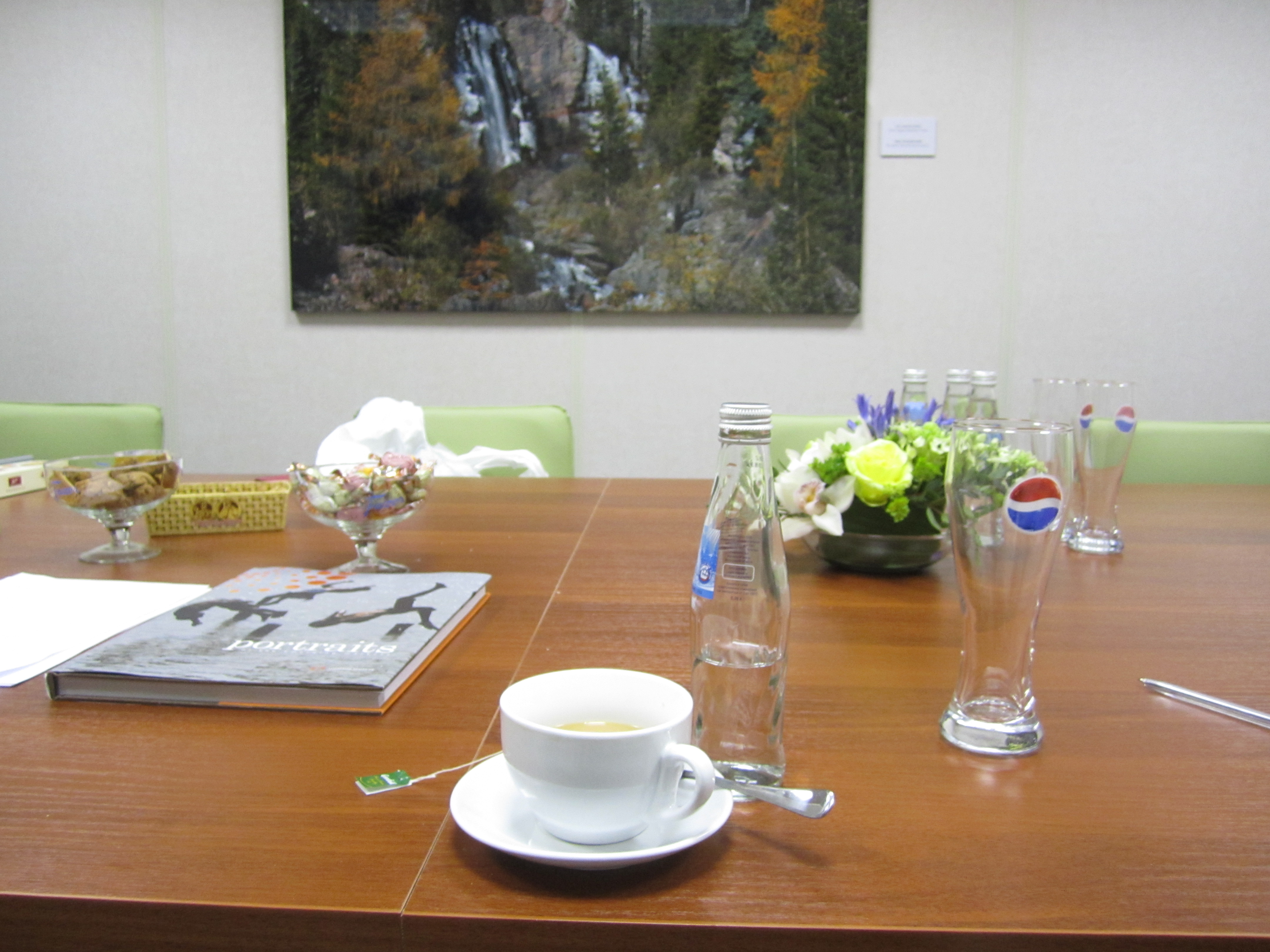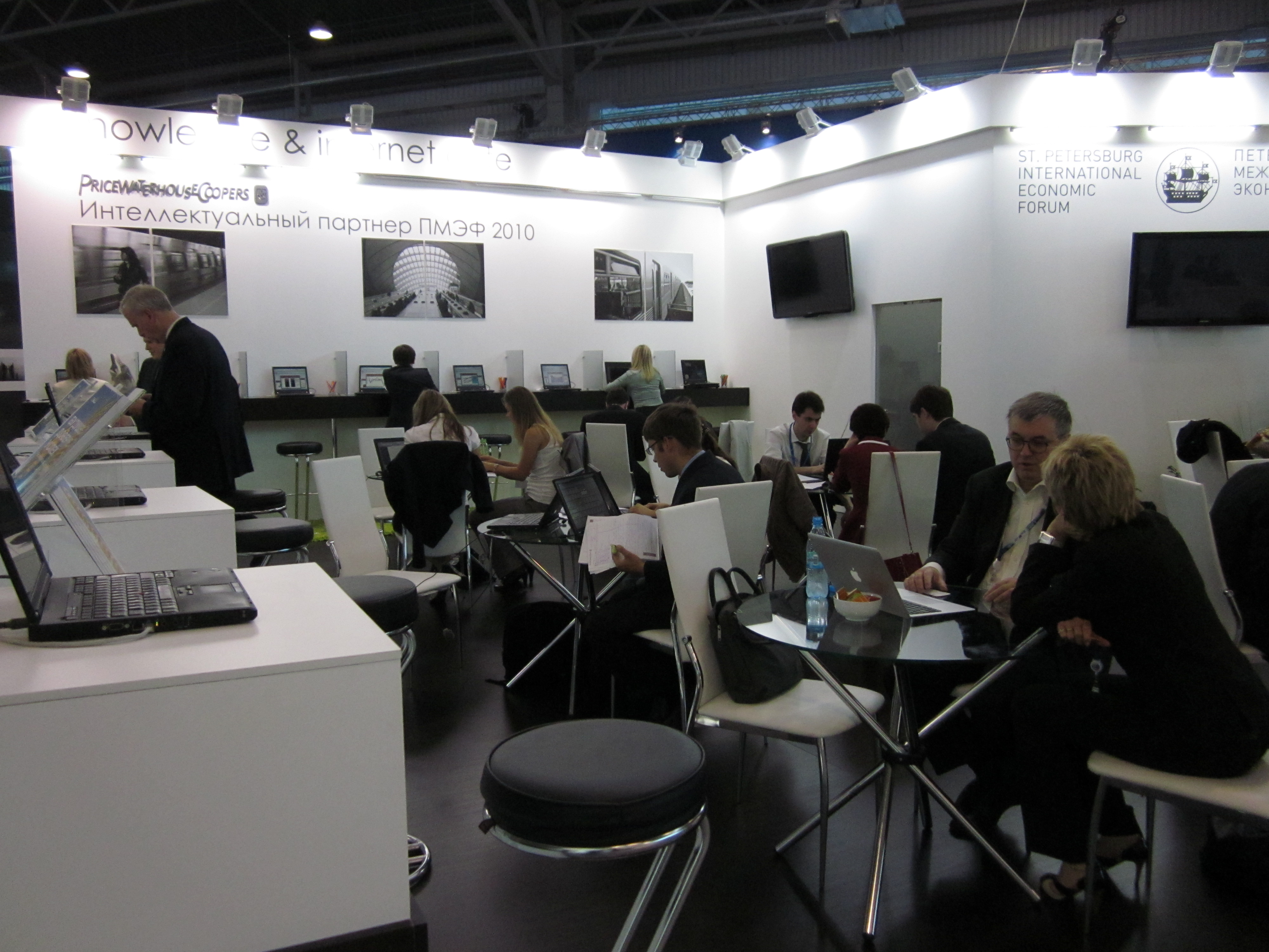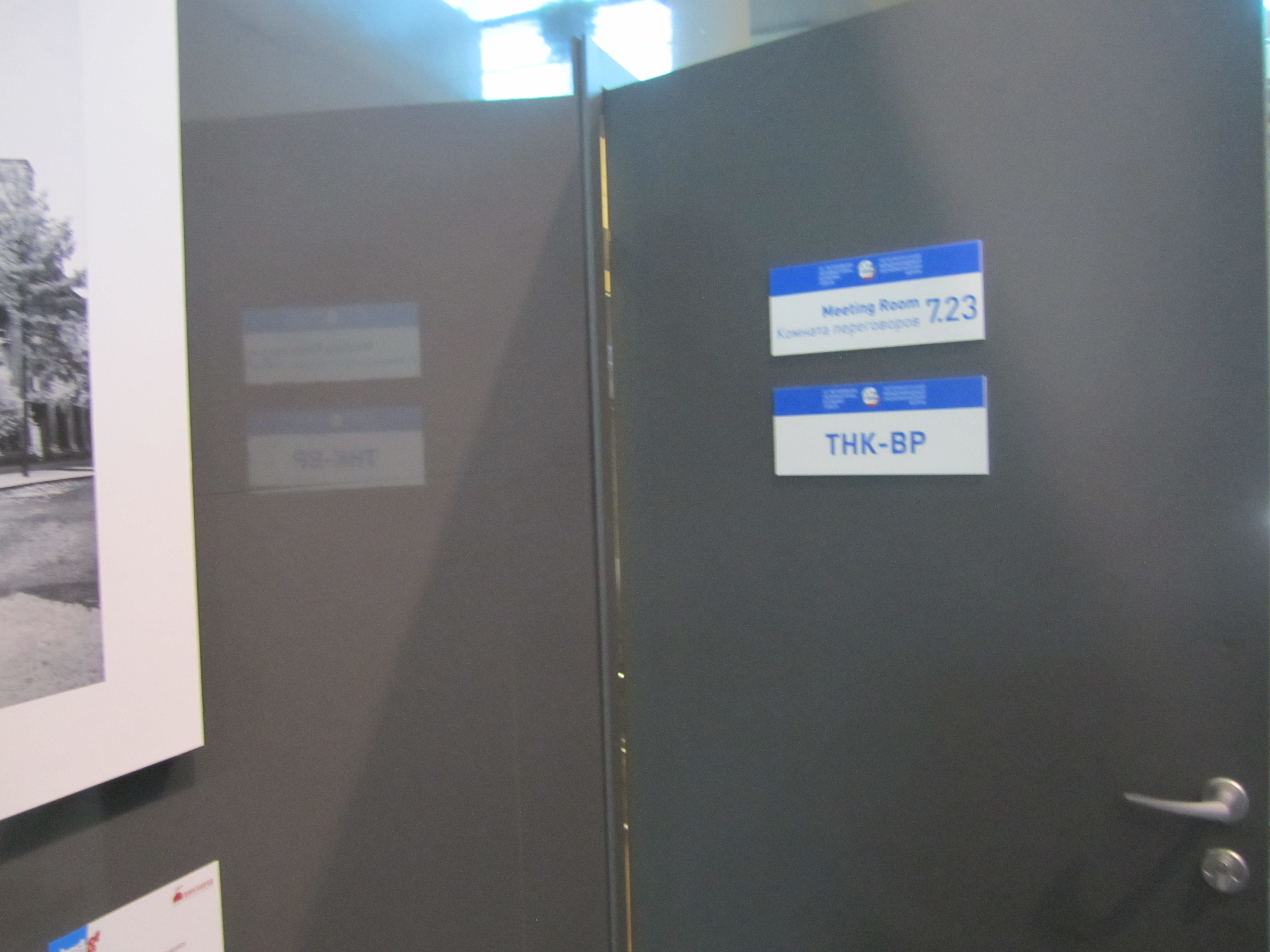 So. To round the day, I had a meeting with Alex Mikhailiants, from TNK-BP, who I mentioned yesterday. The exchange took place in his meeting room. The Forum, in Pavilion 7, has all these company meeting rooms. It does not sound like much, but if you are an American anthropologist, doing research on Russian oil companies, well, being invited into a meeting room is sort of a big deal. It’s just a room of course. But the symbolism of it all.