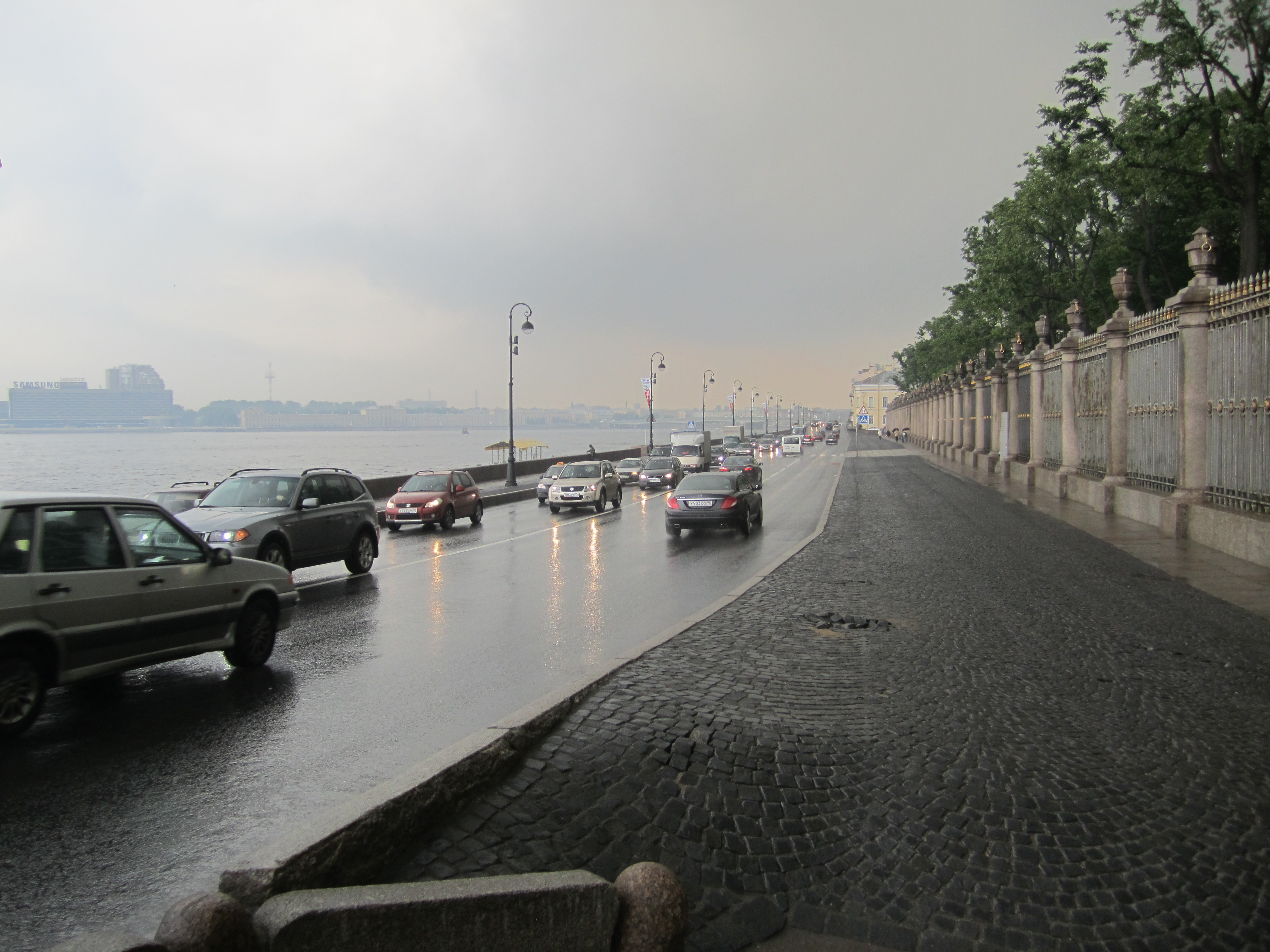 6/15: I had a rather unusual day. First, it was pouring buckets, and I realized that the only garment I required, a trench coat, was somehow left lying on my bed back in Berkeley, not having made it into my luggage. After getting soaked, I ducked into an underground market, and purchased an umbrella, only to find that when I came out from the shelter, that the rain had stopped, and I would be stuck carrying around this “zontik” (as they say in Russian), the rest of the day.
