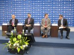 So, here we are starting up a panel on international expansion through funding and it looks pretty serious. Oops, Ryan made a few mistakes and we start over again. Panelists: Peter Derby, Managing Partner, The Concinnity Group suggests calculating risk adjusted to return on investments. Long term financing in the domestic market is important. Fiscal, political, legal environments need stability.