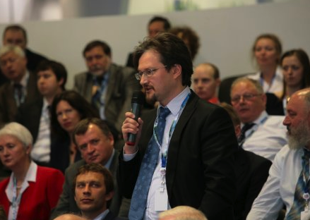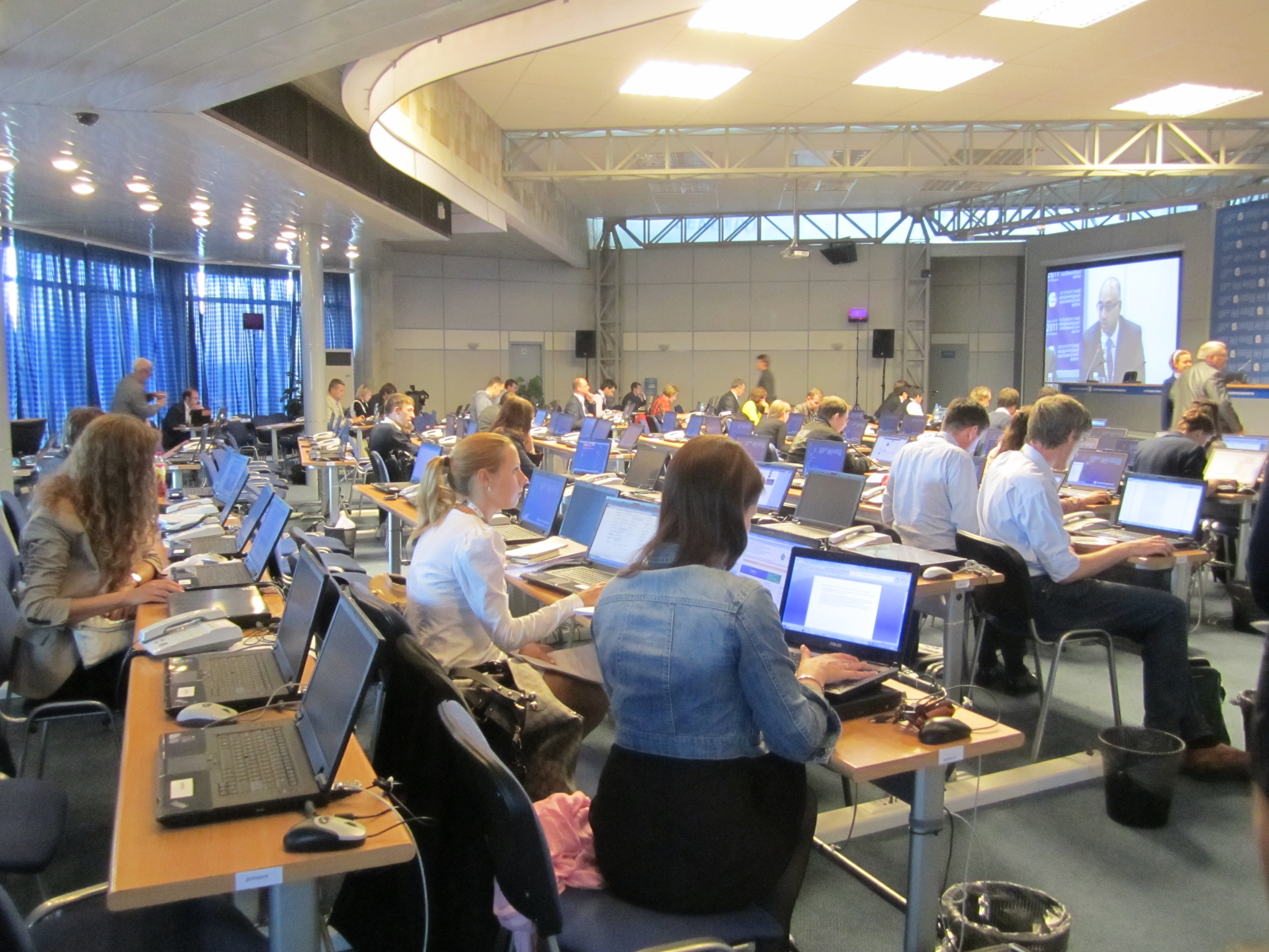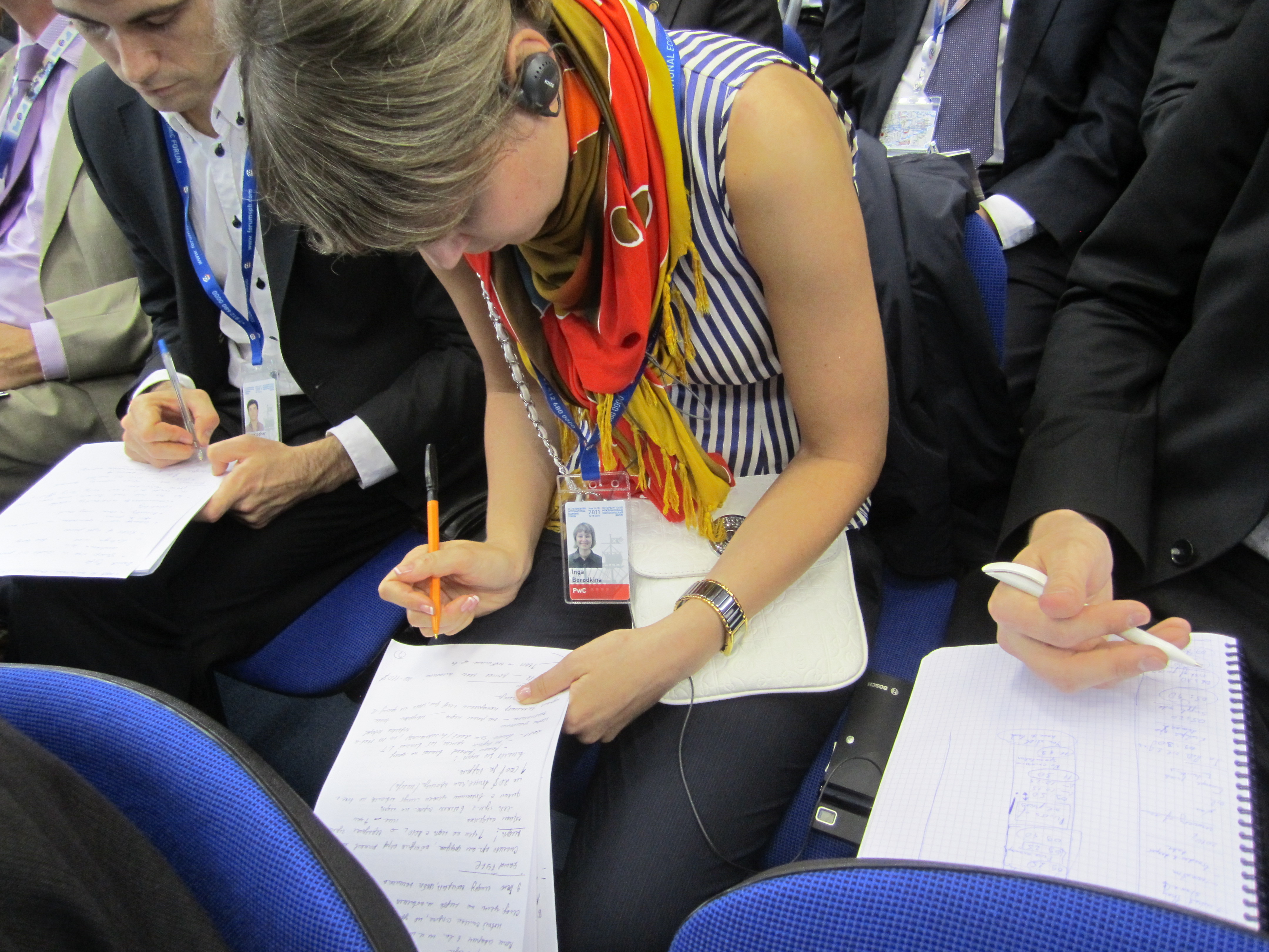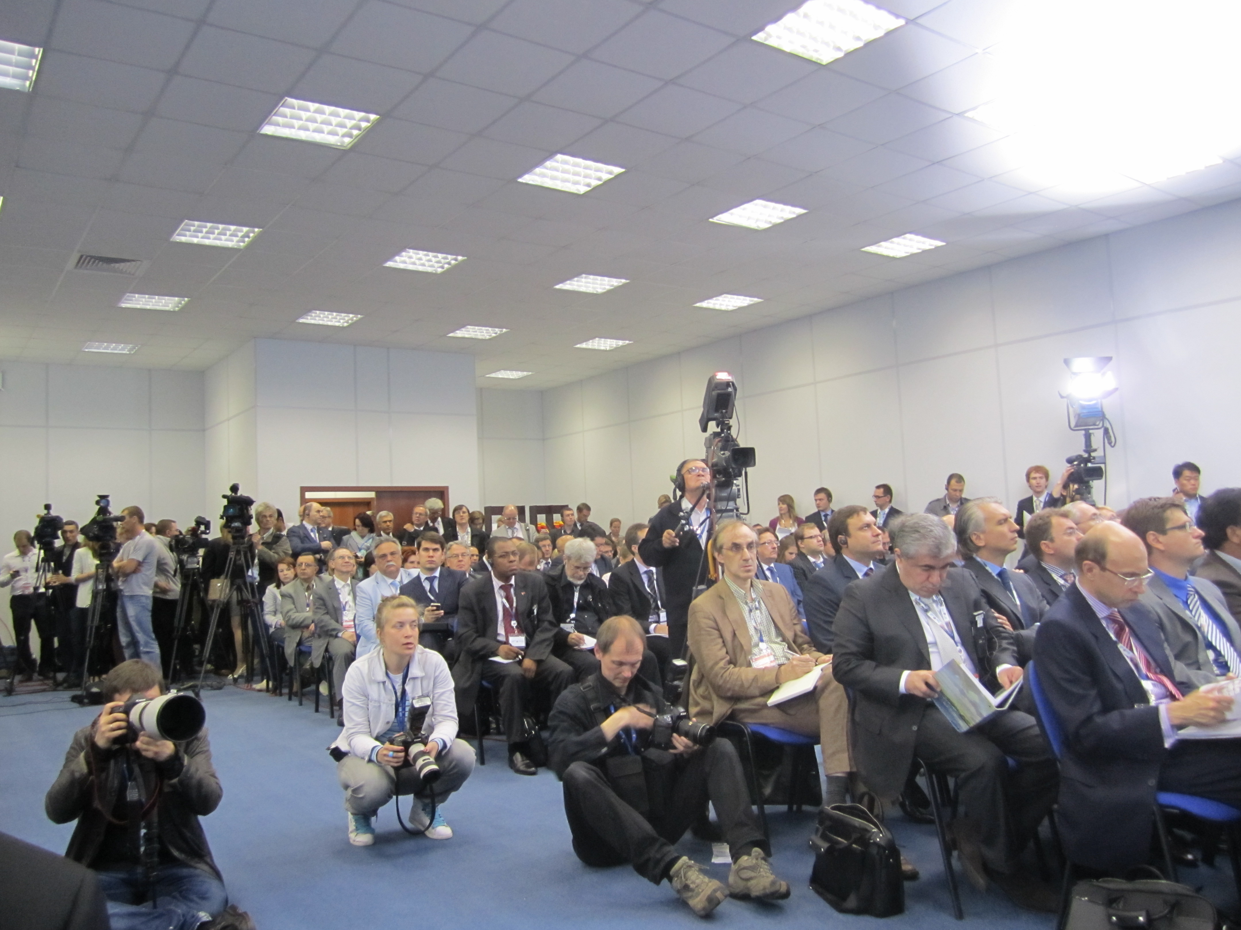 Okay, the Plenary is starting. Oops, I must say, I have some darn good luck: I just plopped down here, and seated next to me is Andy Calitz, Vice President of Shell Oil. Everyone has been asking me whether Shell will step in and team up with Rosneft on Arctic energy development, now that the deal between BP and Rosneft fell through. How should I know? Andy asked me what the word on the street was.