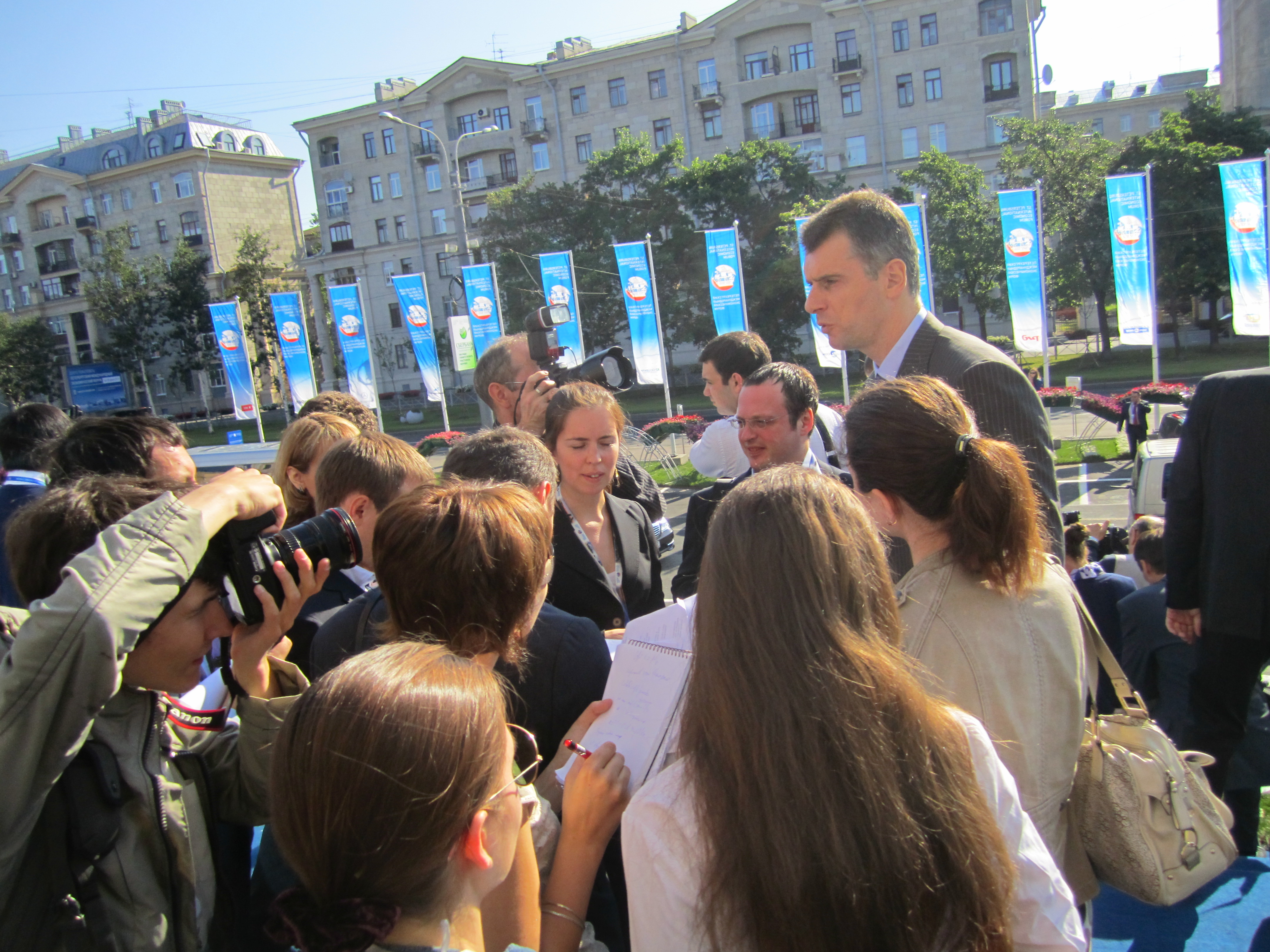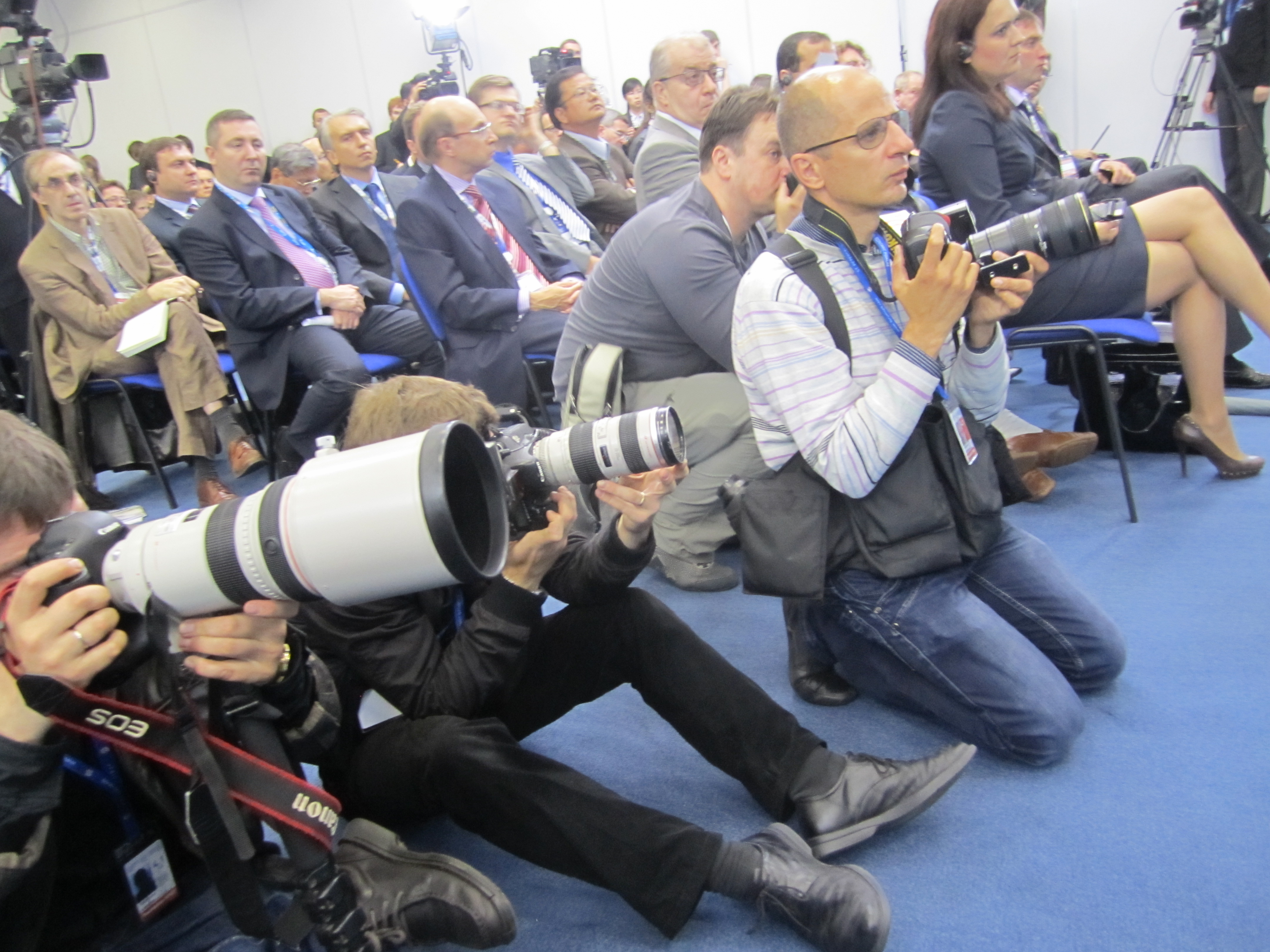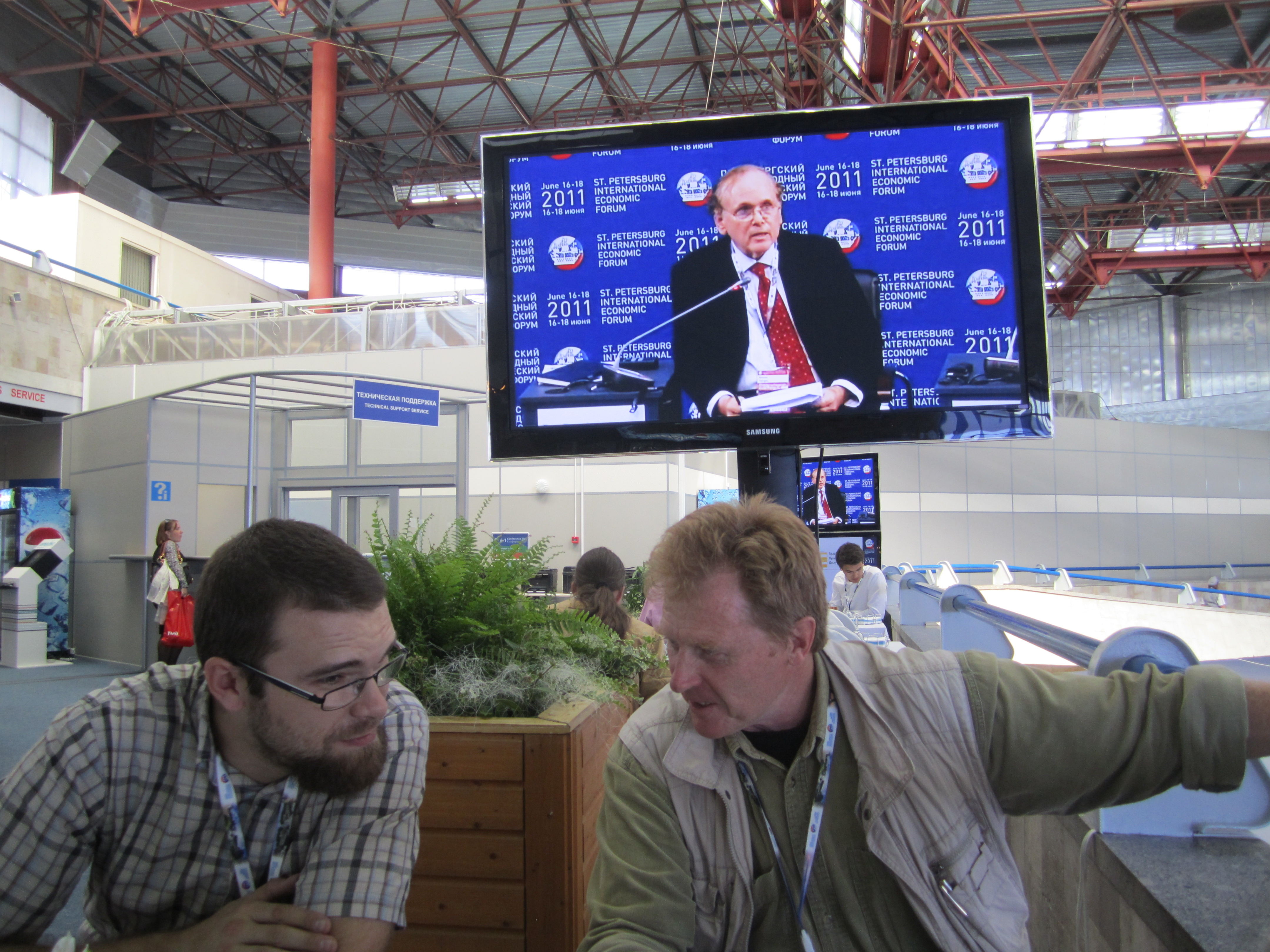 What is that!? Brad Cook, big wig at Bloomberg News has just informed me that Chief Executive Officer German Gref of Russia’s largest bank, Cberbank, is about to make an important announcement. Brad, is actually from Portland, been here for years, started up the Bloomberg office several years ago, when there were only four persons and now they are up to 20 staff.