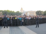 There were tents with food and wine, et cetera. And you needed to have your badge or else no entry. Reuters News Agency’s Television Operations Supervisor from Moscow, Irina Narodnitskaya and I waded through the mass crowd, which was difficult. Finally, we passed through the barricade, into the special zone. I could not help taking a photo of the barricade and the mass of folks.