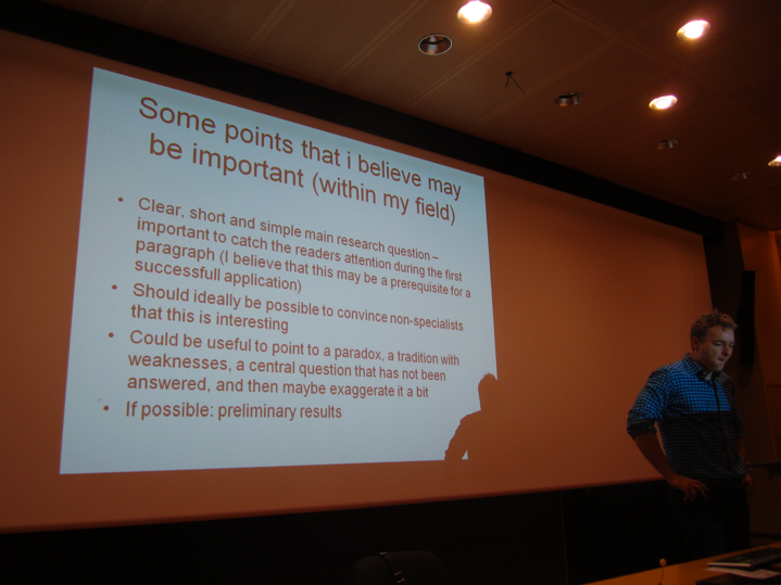 Here I am, sitting in Auditorium 2, Georg Sverdrups Building, University of Oslo, attending a workshop to prepare a European Research Council (ERC) proposal.