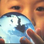The other side of this card has more. Here, the transparent globe has moved from the background to become the central attraction and is resting delicately in the hands of a child. In this image, the globe and strategic energy choices about the world’s future — are imagined as belonging to a next generation of leaders, presumably living in Asia, where strong economic growth is linked to increased energy capture, particularly in China. All of this — symbolized through the physiognomy of a child’s eyes…