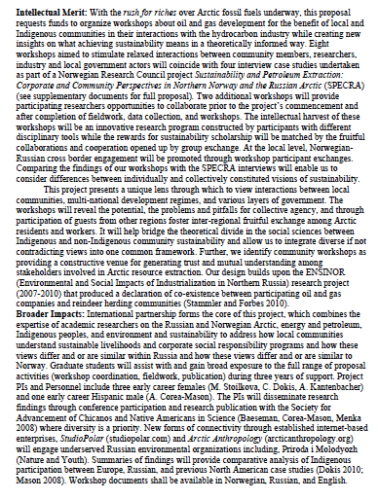 9/13: We submitted a proposal to the National Science Foundation (NSF), titled Pan-Arctic Visions of Sustainability among Indigenous Peoples and the Hydrocarbon Industry (yay!).