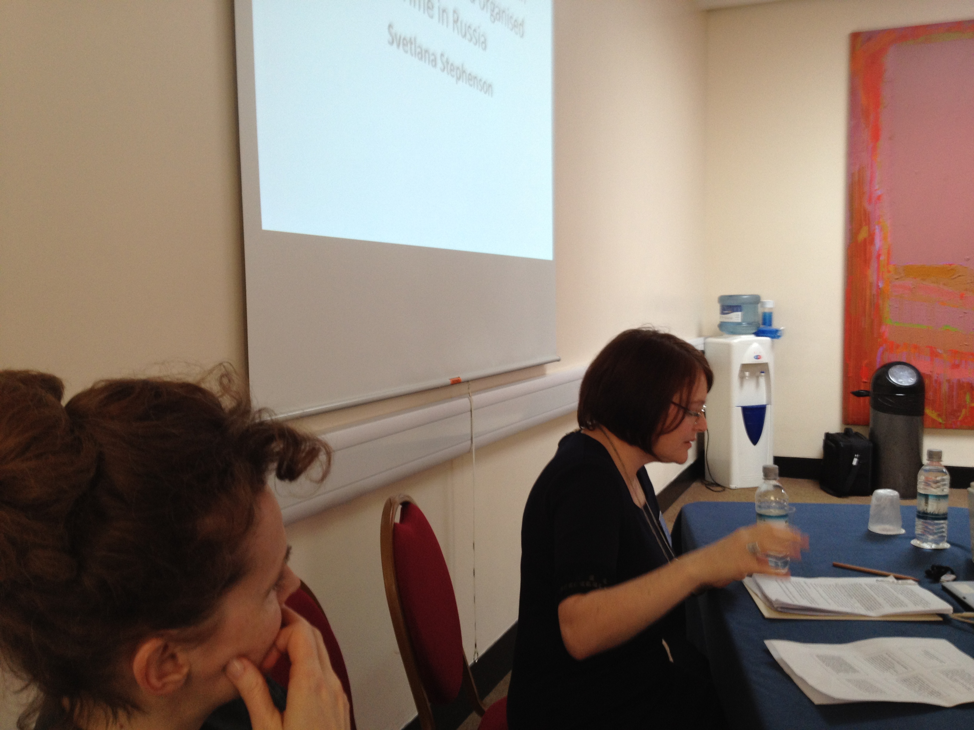 I connected with Svetlana Stephenson (London Metropolitan U). We were on the same panel with her talking about delinquency in Russia and re-education programs, where violent gang members are disciplined with cooking classes and soviet style discourses that that appeal to cultural higher ideologies, how to behave in public places and the like. I could not help likening the irony of treatment to cultural heritage practices in the United States, without which the economic function for such products, would appear equally unusual in neoliberal conditions.