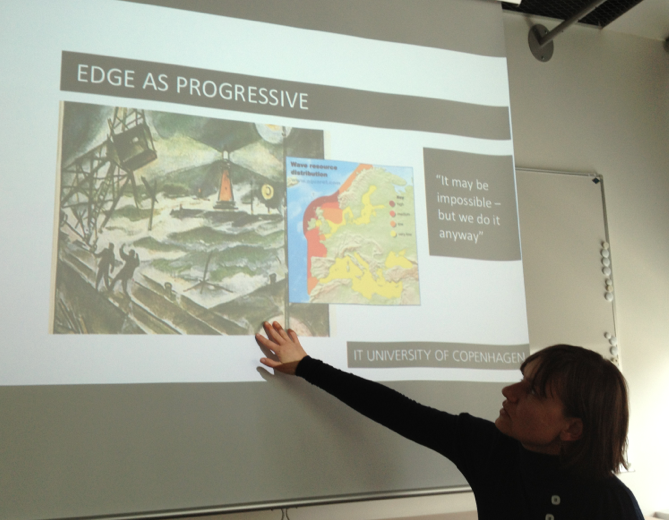 Indigenous cosmopolitics – How to take seriously the edge as a participant, and in what communities is the edge a political device? Frontier, an environment to conquer, tame and manage. Udkant – an environment to escape from. “Hinge or zone of transduction”. Wave developers to mobilize with local politicians – Innovation model.