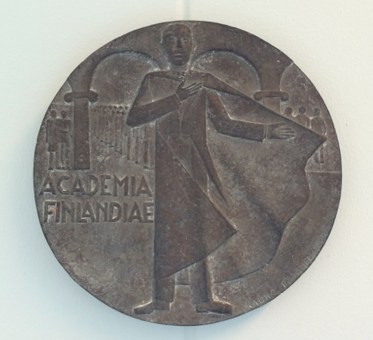 Inside the conference room, a wall-hanging bronze plaque with the engraving Academy of Finland [Suomen Akatemia in Finnish] provided a moment of reflection.