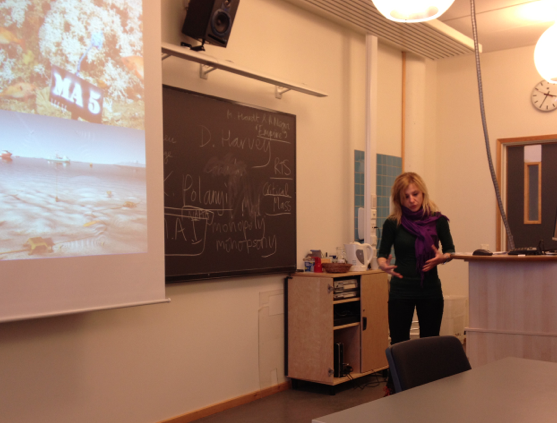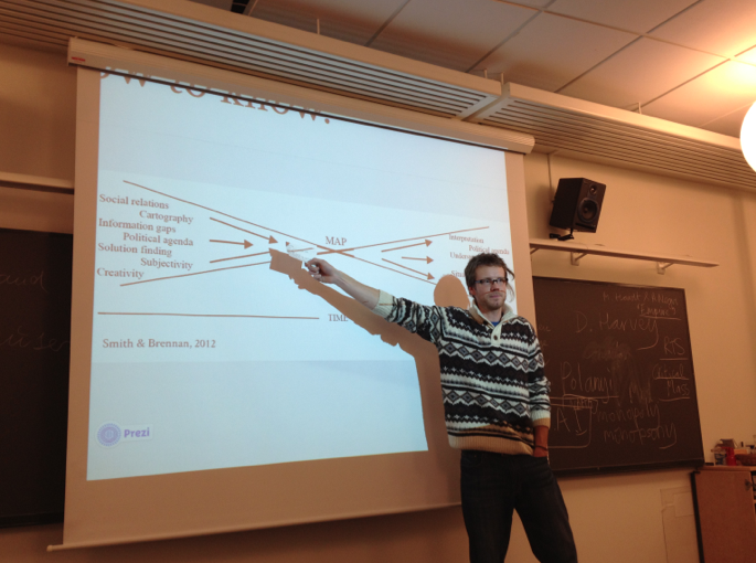 Arn Keeling, professor at Memorial University, up now talking about geography methods, activities he employs in constituting knowledge in his field, genealogy, historical research, and important parallels with anthropological methods, but special challenges with investigating the past, mobilizing time and duration. Turning now to students to listen to some of their methodologies and problems in the understanding of extractive industries. Piotr Graczyk, political science graduate student, examining institutions in the Arctic Council, and employing an emersion method of knowing folks, over and over again, following the game. Dealing with the personal role that the fieldworker has when engaging them in authentic representations of what they are doing. Florian, Berit Krisstofersson, talking about how to turn limitations into a problematization of analysis. We are speaking now about issues of fieldwork, when we can get access and when we cannot, the concept of theory and how the empirical could contribute to a notion of theory.